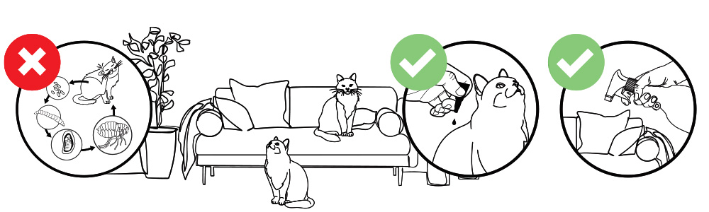 - Avoid grooming and allow the treatment to dry to prevent marking of household surfaces.