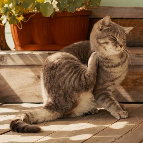 1. With your cat standing upright, part the hair on the back their neck until the skin is visible