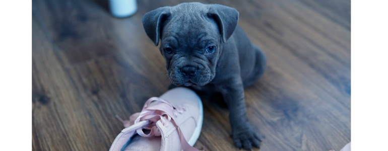 At the same time, try to minimise their opportunity to chew on the wrong things by keeping your valuable items, such as shoes or clothing, out of reach. If you catch them chewing on the wrong thing, try not to punish them, but give your puppy an appropriate alternative and reward them for chewing on it instead. Good management practices, like crate training your puppy or placing them in a puppy pen when you cannot supervise them can help to reduce inappropriate chewing. Baby gates can also be helpful to restrict your puppy’s access to other parts of the home which contain tempting things to chew.